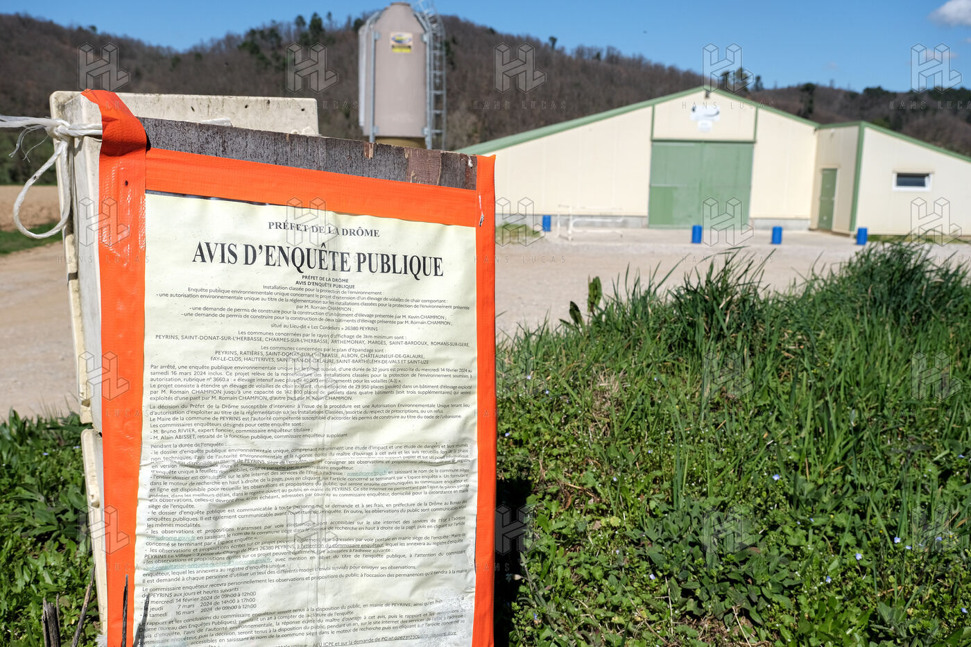 View of the site planned for the expansion of a chicken farm which provokes the anger of local residents and environmental protection associations in Peyrins, France, March 19, 2024
