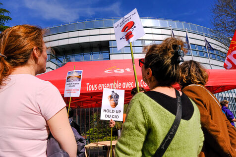 Agents of the Valence information and orientation center (CIO) demonstrate following the announcement of the end of its funding by the Drôme Departmental Council.