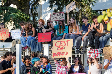 Middle school, high school and senior high school preparation class students from the Camille Vernet school campus were unable to enter the establishment during the morning, blocked by around a hundred young demonstrators, sitting in front of the entrance gates, as part of the protest on Wednesday September 10 "Let's Block Everything".