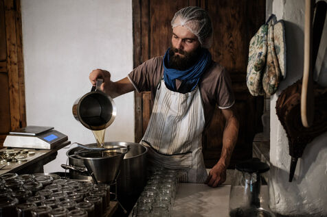 Sylvain is a "peasant producer". After graduating as an agricultural engineer, Sylvain chose to return to the land of the Huguenot, his family's Cévennes region, convinced that he would be more useful there and that his actions would be more meaningful in the concrete work of the land.