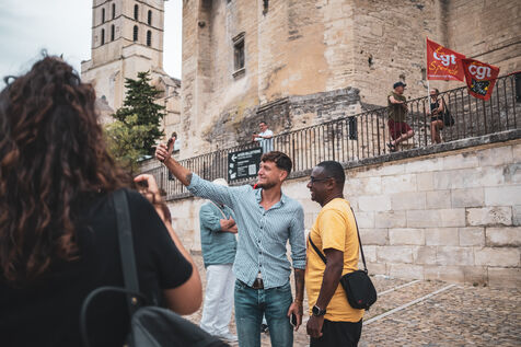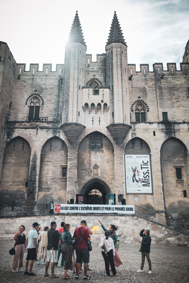 Raphael Arnault (Nouveau Front Populaire, militant antifasciste), récemment élu député de la première circonscription du Vaucluse, participe a un rassemblement à l'appel de la CGT contre l'extrême droite et pour le progrès social, en présence de la secrétaire générale de la CGT Sophie Binet, devant le Palais des Papes et pendant le Festival d'Avignon.