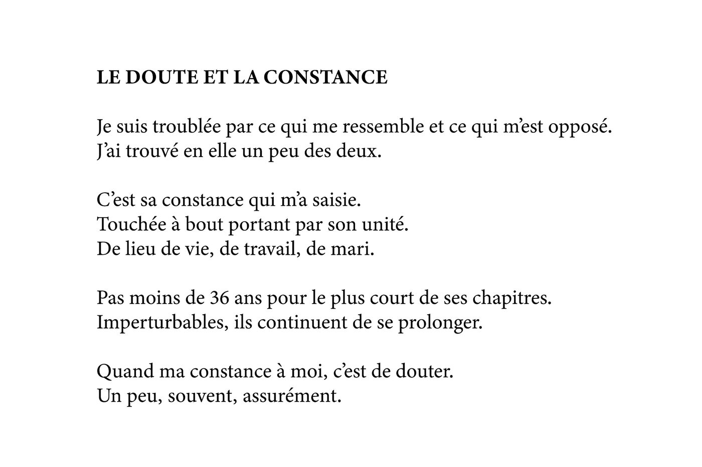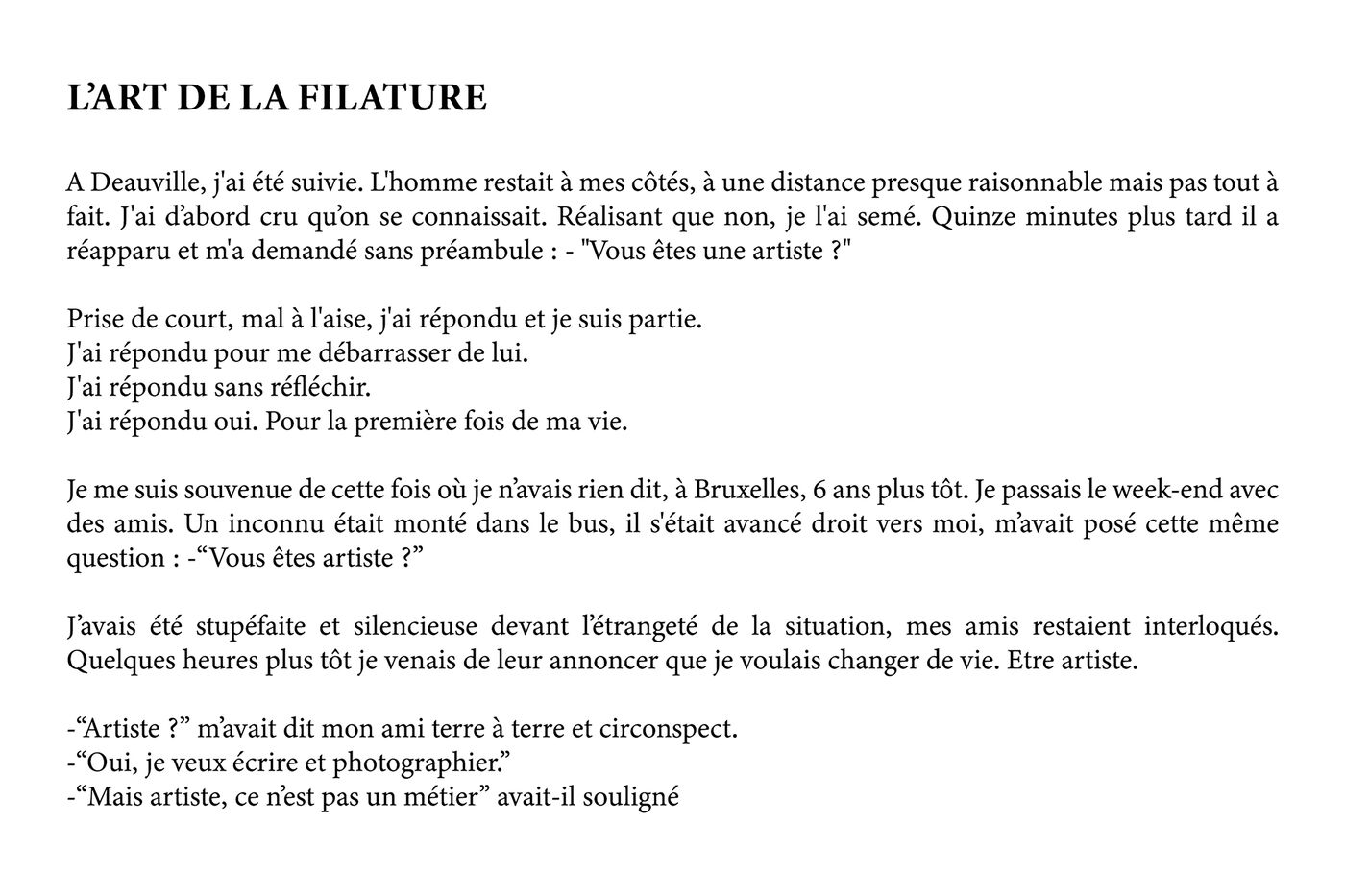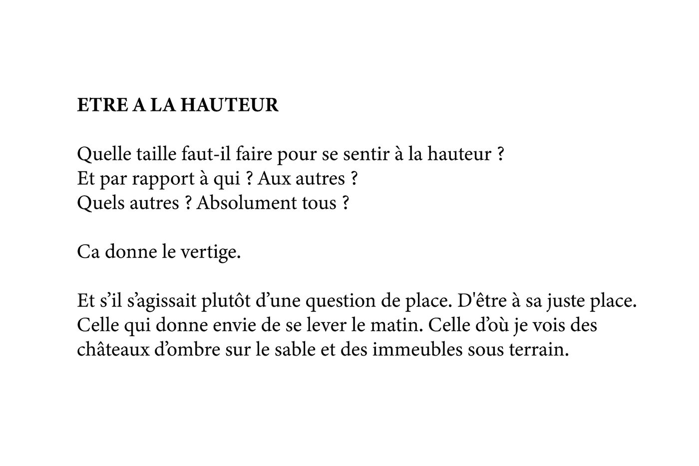 Travelling through your emotions instead of running away from them. Going around them, drawing their contours. Overcoming your doubts. Then doubting again. No longer doubting that it will last forever. Living under the same roof, sharing and wondering if that's what networking is all about. Telling yourself that it's a shame to be so big and never feel up to it. Lacking codes, training, references and yet still being there. Deciding that the result will ultimately be the path you take. The feeling that you've experienced something significant. Putting into words what is not being said. Finding yourself in exactly the right place. Seeing your project evolve and yourself with it. Ego toasting, ego dancing. The oldest of the young talents. Figuratively speaking, taking your clothes off. The encounters that touch. Ideas that are born. Getting back to basics. Photographing. Writing.