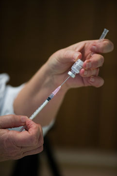 Les membres a risque du personnel soignant de la clinique ambroise pare ainsi que les patients de l ehpad se font vacciner avec des vaccins pfizer.