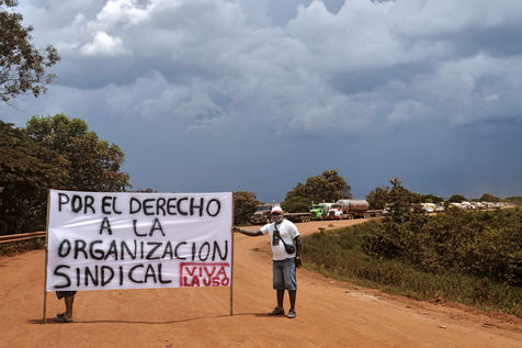 This industry is fed with a flexible workforce coming from all parts of Colombia, who are subject to dreadful working conditions. In Campo Rubiales and Campo Quifa, the largest oilfields in the area, the Canadian multinational Pacific Rubiales Energy produces 250.000 barrels per day, representing a quarter of the national production. In 2011, the USO launched an organizing effort with workers and succeed in affiliating a majority of Campo Rubiales, before being forced out by an axis of armed state forces, Pacific Rubiales Energy?s actions and a newly formed company union.