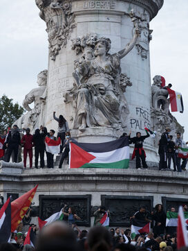Malgré l' interdiction par le préfet de police, Laurent Nuñez, une manifestation pro palestinienne s' est tenue place de la République. Environ 3000 personnes, munis de drapeaux palestiniens, se sont retrouvées vers 18 heures autour des slogans de « Palestine vaincra », ou encore « Israël assassin, Macron complice »,. On décompte 24 verbalisations et 10 interpellations effectuées, chiffres fournis par la préfecture de Police de Paris.