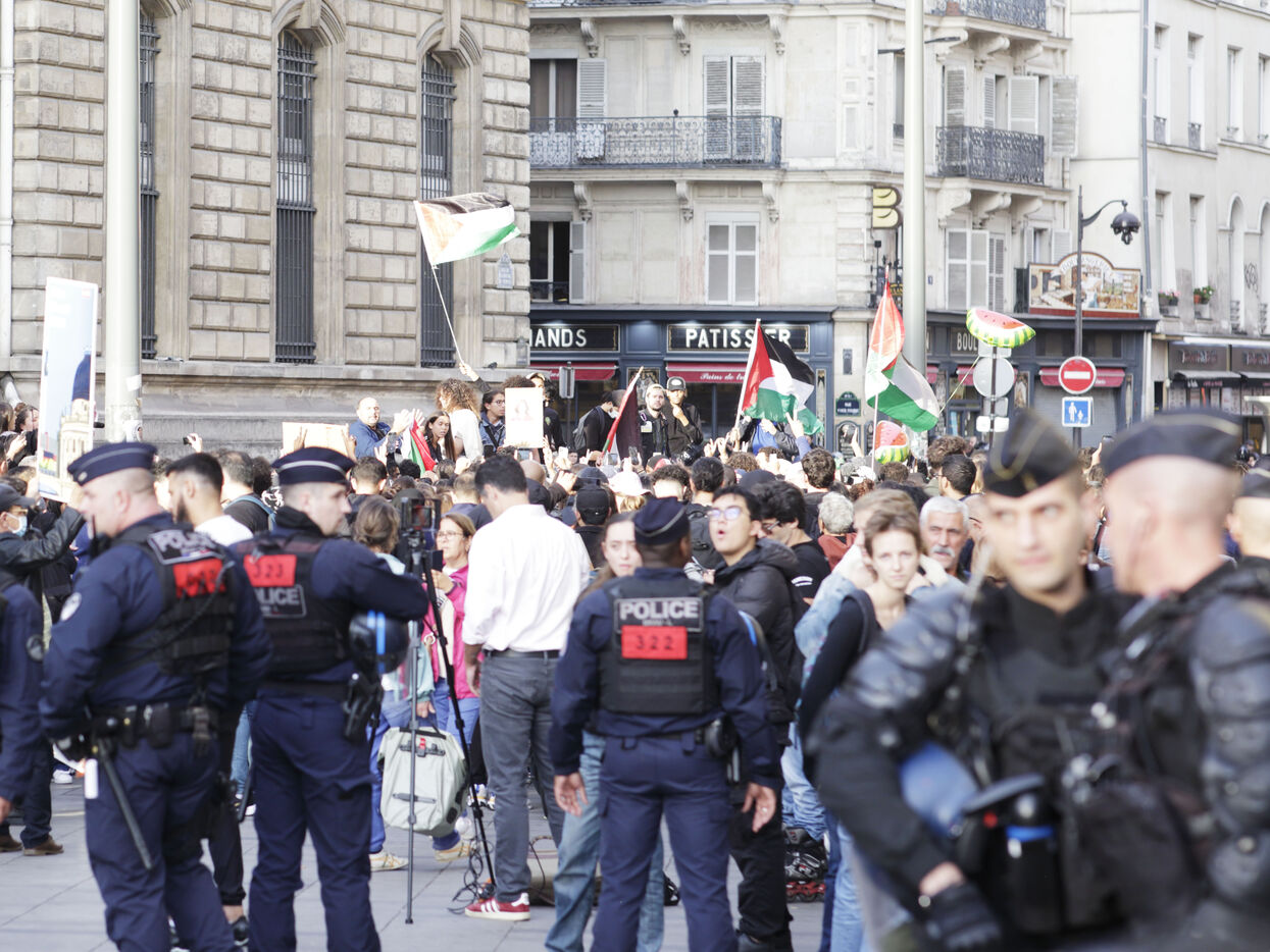 Despite a ban by the Prefect of Police, Laurent Nuñez, a pro-Palestinian demonstration was held in Place de la République. Around 3,000 people, carrying Palestinian flags, gathered around 6 p.m. to raise slogans such as "Palestine vaincra" ("Palestine will win") and "Israël assassin, Macron complice" ("Israel is a murderer, Macron is an accomplice"). The Paris Prefecture of Police issued 24 fines and arrested 10 people.