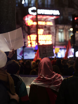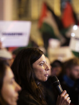 Le 23 février se tenait la cérémonie des César à l' Olympia, en face des associations féministes et syndicales étaient présents pour dénoncer les violences et le silence sexuel qui craignent dans le monde du cinéma français. Il y avait notamment le collectif 50/50, la société des réalisatrices et réalisateurs Français, la CGT spectacle. Des militants pro-palestiniens. Des militants pro-palestiniens se sont joint pour demander une cesse le feu à Gaza, et rappeler que cette guerre durait depuis 140 jours. Sabine Binet et l' actrice Anna Mouglalisont, on prie la parole durant ce rassemblement.