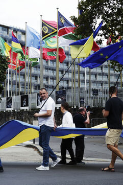 En ce samedi 24 août, c'est le jour de la fête nationale qui marque le jour de l'indépendance du 24 août 1991. Organisé notamment par l'Union des Ukrainiens de France " UUK ", cette marche, c'est déroulé dans le cartier des Invalides. Son Excellence Vadym Omelchenko, l'ambassadeur d'Ukraine en France est présents, avec sa famille.