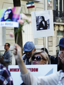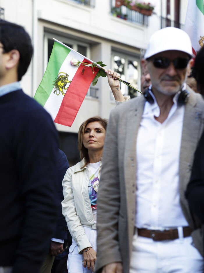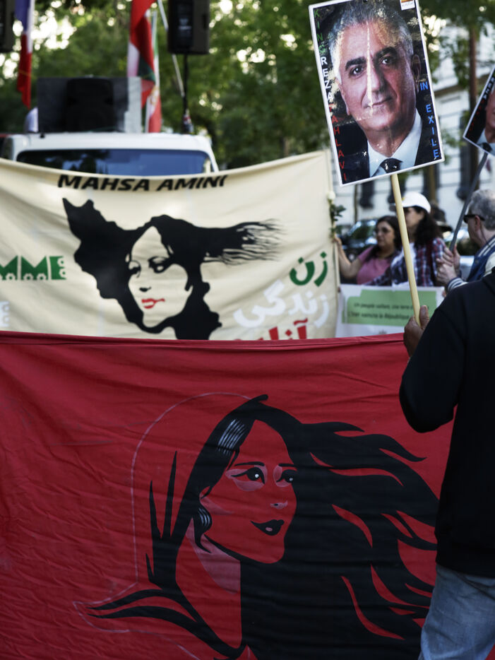The Femme Vie iIberté movement held a demonstration on Sunday 15 September to commemorate the two-year anniversary of the death of Mahsa Amini, who was arrested by the morality police for wearing a headscarf incorrectly. Tribute was also paid to rapper Toomaj Salehi and singer Shervin Hajipour, both currently imprisoned in Iran for their involvement in the Femme Vie Liberté movement. Many posters carried by the participants paid tribute to Reza Pahlavi, Crown Prince of Iran and eldest son of the last Shah. His wife, Princess Yasmine Pahlavi, was present, surrounded by an impressive security team.