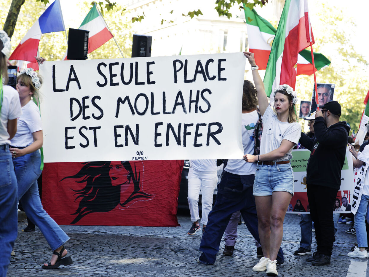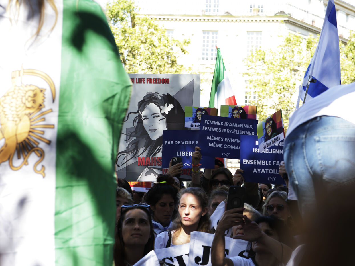 Le mouvement Femme Vie iIberté manifestait ce dimanche, 15 septembre pour commémorer les deux ans de la mort de Mahsa Amini arrêtée par la police des mœurs pour un voile mal porté. Un hommage a été également rendu au rappeur Toomaj Salehi, et au chanteur Shervin Hajipour tout deux actuellement emprisonner en Iran pour leur engagement dans le mouvement Femme Vie Liberté.De nombreuses affiches portés par les participants rendaient hommage à Reza Pahlavi, prince héritier d'Iran et fils aîné du dernier shah. Son épouse, la princesse, Yasmine Pahlavi était présente entoure d’un sérieux service d’ordre.