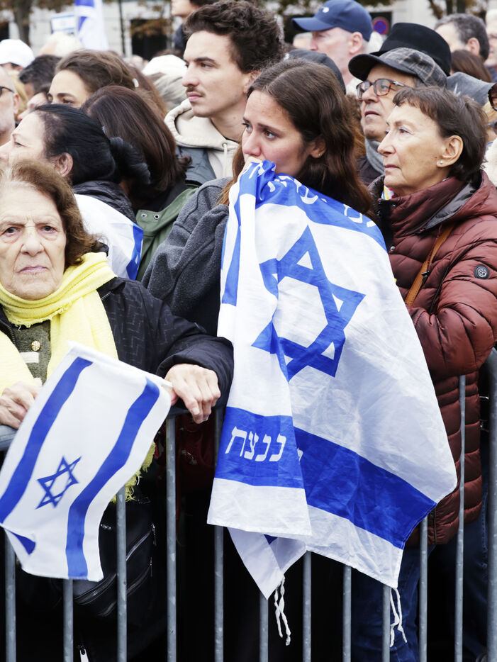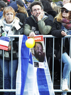 Place de Fontenoy, un certain nombre d'organisation de la communauté juive se sont réunis sous l'impulsion du KKL France"Keren Kayemeth Leisraël-Fonds" pour marquer les un ans de l'attaque du Hamas sur le territoire israélien. Un certain nombre de personnalités étaient présente, l'imam de Drancy Hassen Chalghoumi, le directeur pour l'Europe du conseil mondial des imams, l'imam Mohamed Mehdizadeh et Ariel Goldman, président du fsju "Le Fonds Social Juif Unifié" et de la fondation du judaïsme.