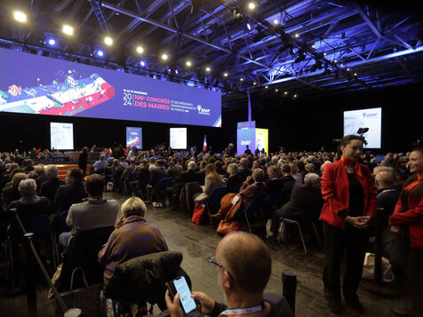 The convention of the Association des Maires de France traditionally begins with a meeting of its members in the large auditorium, with an opening speech by the mayor of Canne, David Lismard. This was followed by the presentation of the activity report for the past year by Madame Mureielle Fabre, General Secretary of the AMF. Also present was Madame Anne Hidalgo, Mayor of Paris, who also took the floor.