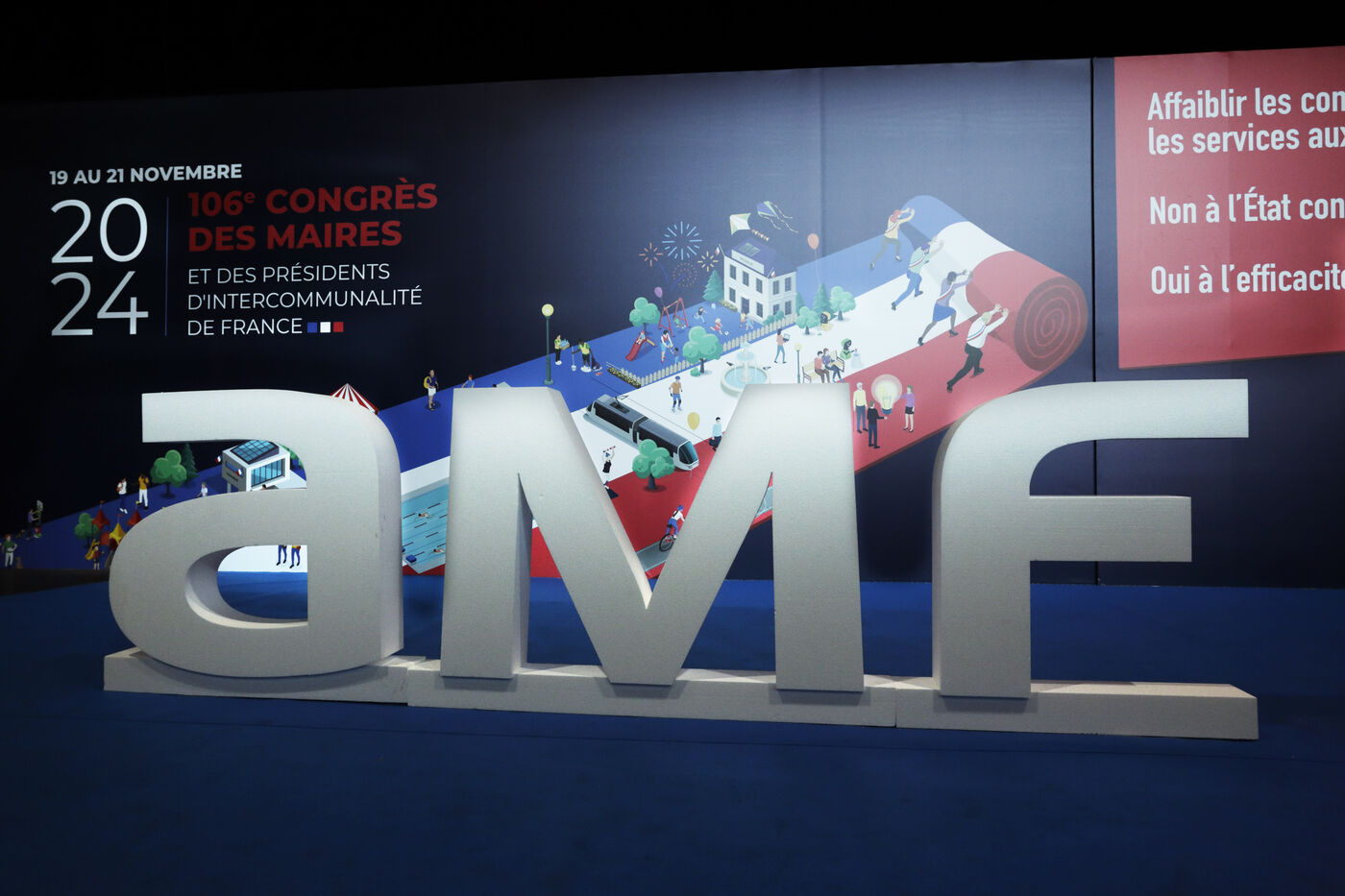 Le congrès de l’Association des Maires de France commence traditionnellement par la réunion de ces membres dans le grand auditorium, avec le discours d’ouverture par le maire de Canne, monsieur David Lismard. Puis la présentation du rapport d’activité par Madame Murielle Fabre, secrétaire générale de l’AMF ; de l’année écoulée. Était présente notamment madame Anne Hidalgo, maire de Paris, qui elle aussi prit la parole.