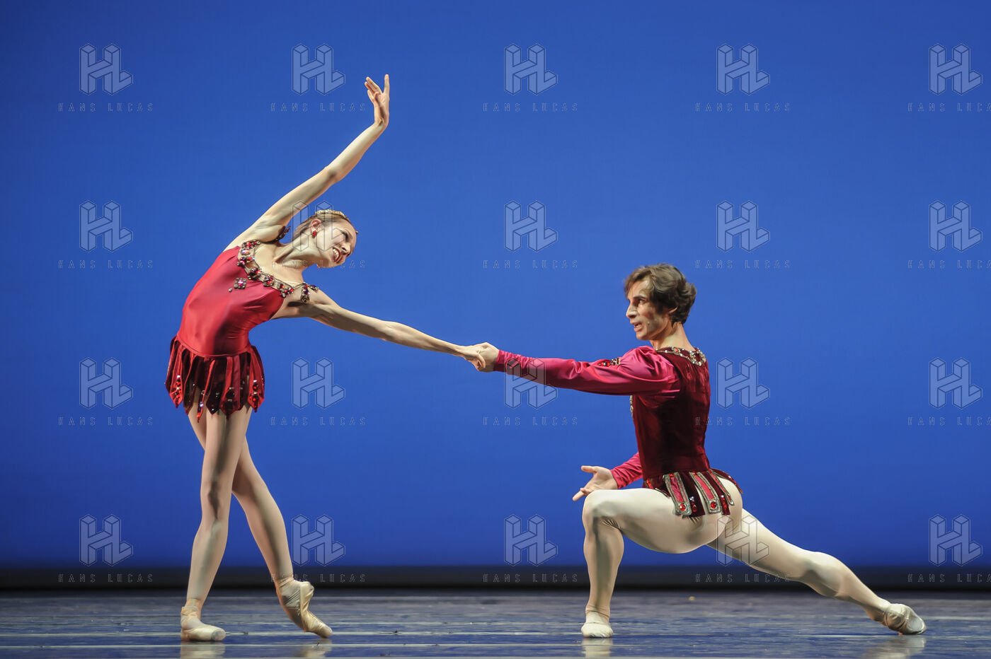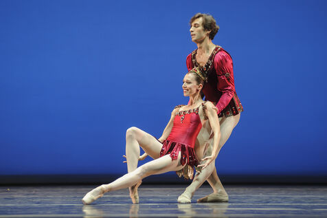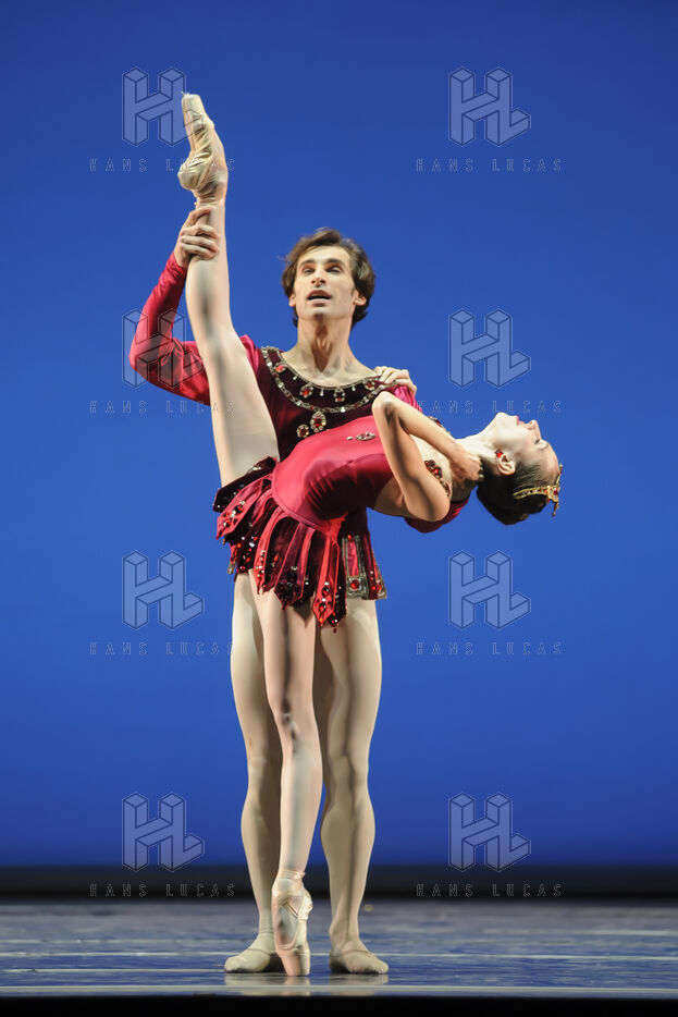 Nina Polakova and Mihail Sosnovschi from the Wiener Staatsballet led by Manuel Legris (Paris Opera Ballet Etoile) performing RUBIES, the 2nd part of JEWELS by George Balanchine at Theatre du Chatelet during the dance festival Les Etes de la Danse in 2013.