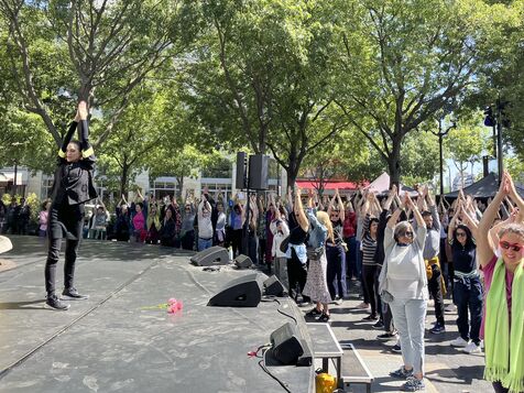 En marge du spectacle Vollmond au Theatre de la Ville, Julie Anne Stanzak, danseuse du Tanztheater Wuppertal, anime un atelier choregraphique, DANSEZ LA NELKEN LINE ou elle enseigne aux participants parisiens la Nelken Line, choregraphie de ligne de Pina Bausch extraite de la piece Nelken.