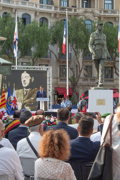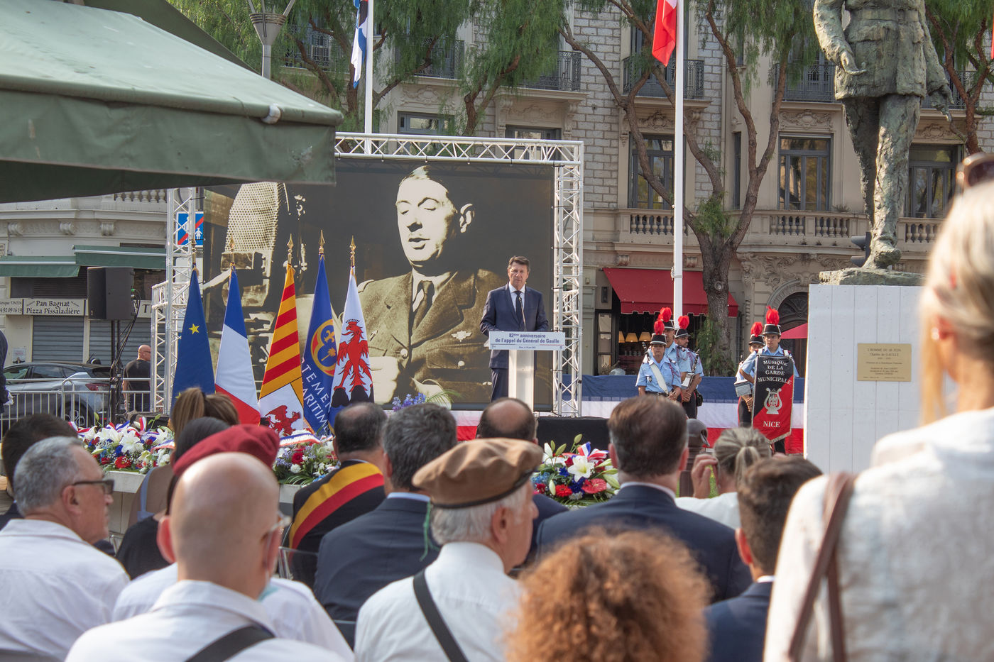 Commemoration of the appeal of General de Gaulle and speech of Christian Estrosi, on the Charles de Gaulle square in Nice.