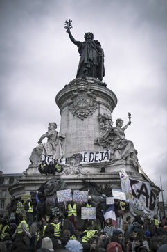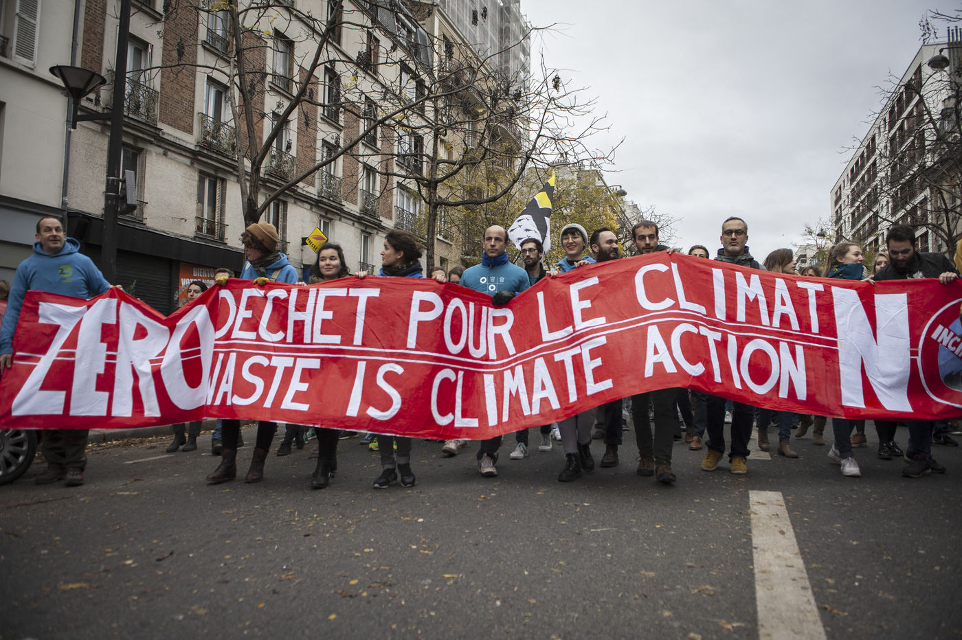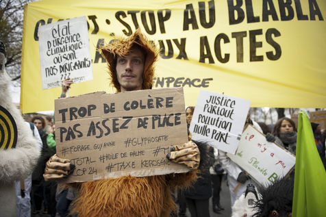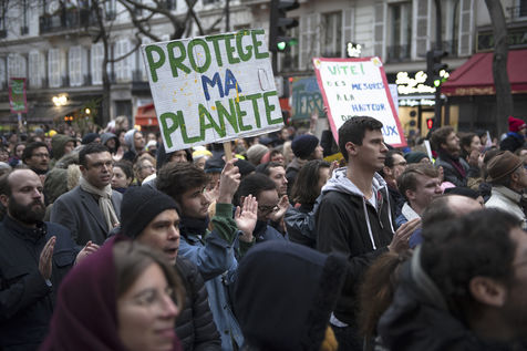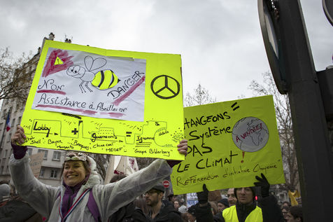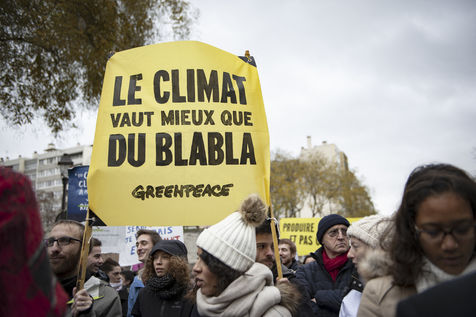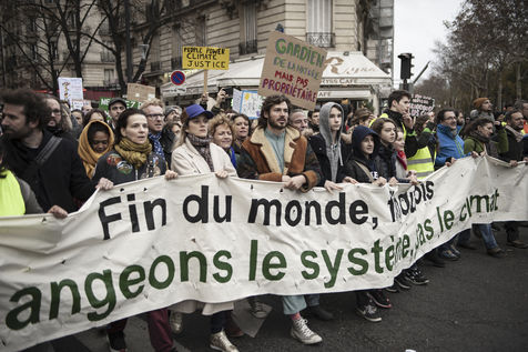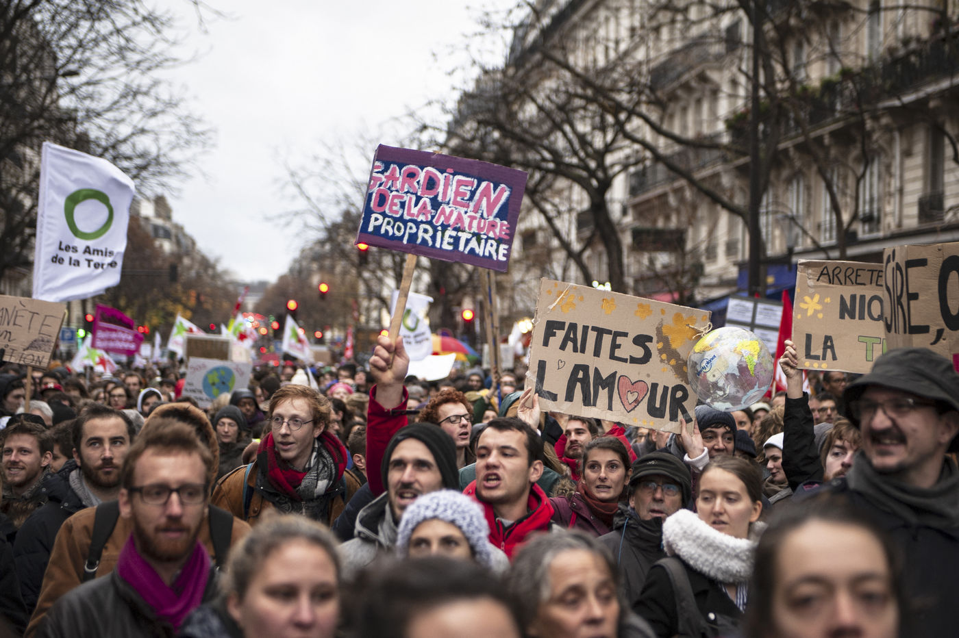 Manifestation pour le climat pendant la COP24. Plus de 17 000 militants écologistes (selon la police) et 25 000 (selon les organisateurs) - rejoints par quelques Gilets jaunes - ont manifesté pacifiquement à Paris samedi 8 décembre.
