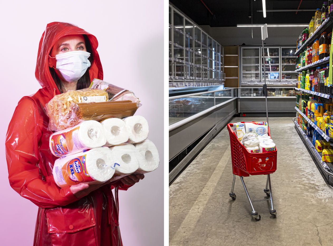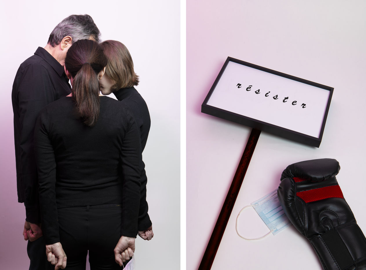 For my part, my series "Diptyque: confinement from D4 to D13" brings to the stage day by day - from Friday 20 to Sunday 29 March - subjects shared by the greatest number: shopping, cooking, reading, sport, 8 p.m applause, social networks and the family. As for mine, it disappeared as soon as I took out my camera - hardly was she going to hide under the bed or in the cupboards. So, the self-portrait imposed itself. As for the choice of the final date, it also fell naturally. My series ended with the single shot of my daughter and husband. It was the negotiation to get them to agree to let me photograph them. It must be said that during these ten days of confinement, I had transformed the main room into a studio with its backdrop, lighting and blinds closed.