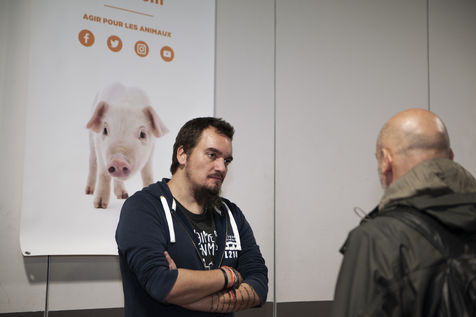 He becomes a vegan in 2014. The transition is difficult for him, so deeply rooted in his habits, as well as for those around him. He must learn to gradually change his diet. He experiences a dissonance between his thoughts, which refuse to eat animals, and his appetite for meat and cheese. In the same year, as a volunteer, he gets closer to vegan associations, including L214. While working as a logistics manager in the event industry, his life changed in 2016 when L214 hired him full time. He makes new friends and in 2018 he meets Charlotte, who is also vegan. They both dream of nature and want to leave Paris. They do so in 2019 and get married the same year.