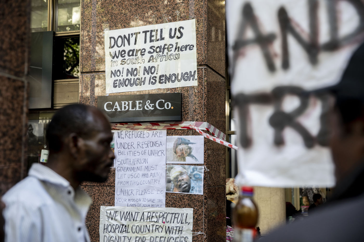 Suite à la résurgence des attaques xénophobes en Afrique du Sud, les réfugiés et les demandeurs d'asile ont commencé un « sit-in » devant le Haut Commissariat des Nations Unies pour les réfugiés au Cap pour demander une solution. Depuis lors, la manifestation s'est étendue à d'autres grandes villes, dont Pretoria et Durban.