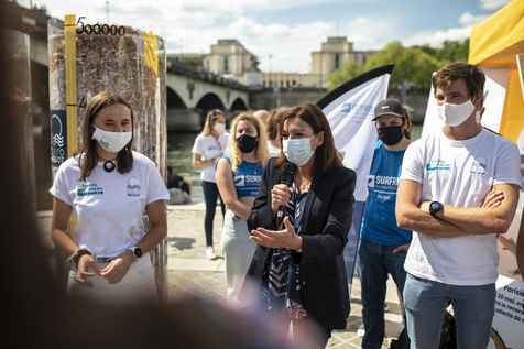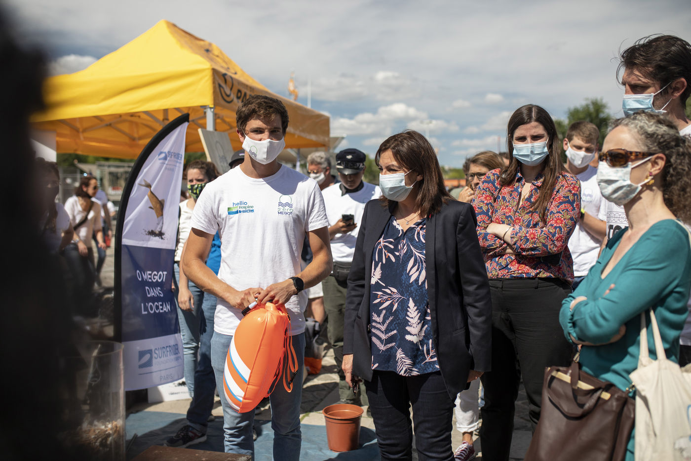 Anne Hidalgo, la maire de Paris, est venue rencontrer l'équipe de 0 mégot, qui a ce matin établit le record du monde de collecte de mégot en ramassant plus de 850 000 mégots en 3 heures dans Paris avec l'aide de plus de 1000 bénévoles. Les nageurs de 0 mégot ont ensuite commencés leur périple de 380 km de natation à travers la Seine, de Paris à Deauville, retraçant le chemin symbolique d'un mégot jeté dans les rues de Paris, finissant dans l'océan Atlantique.