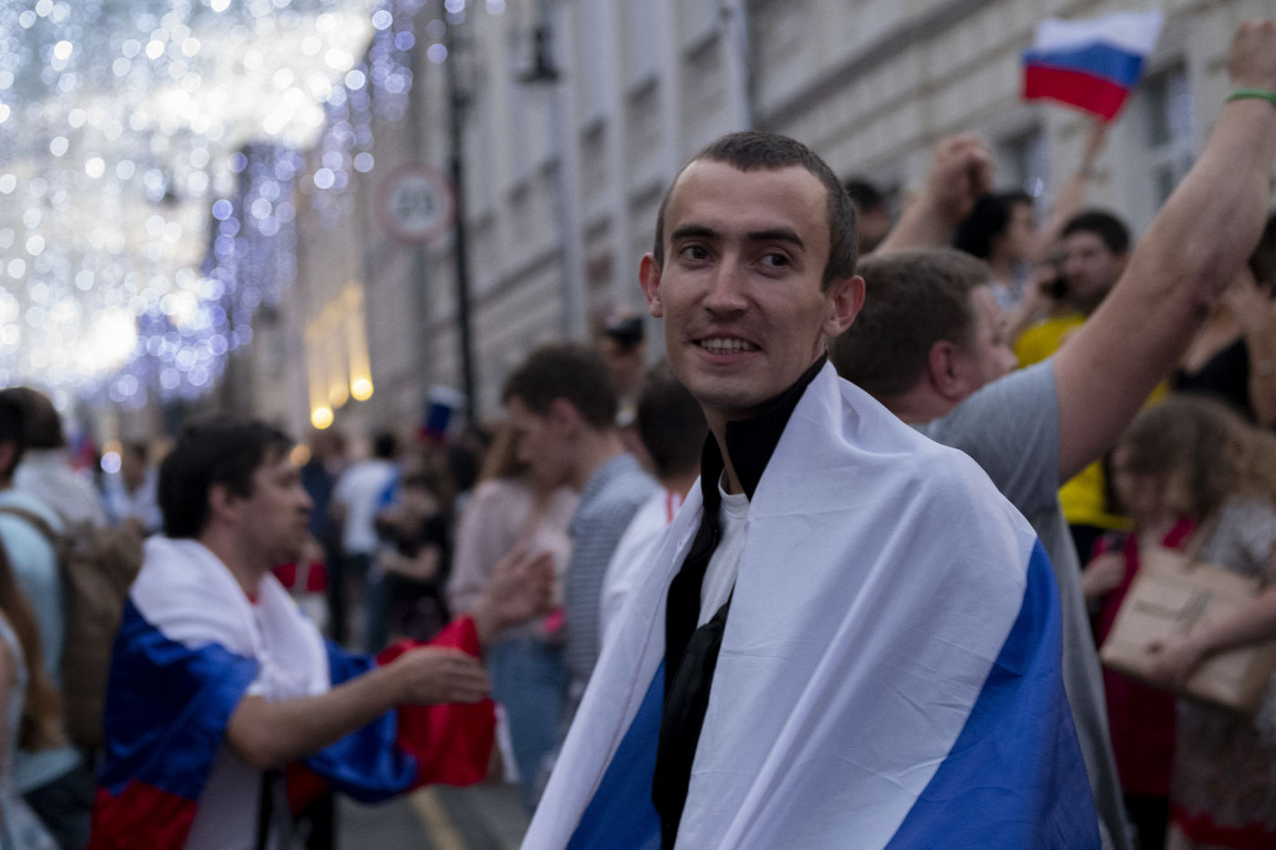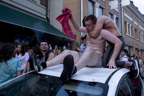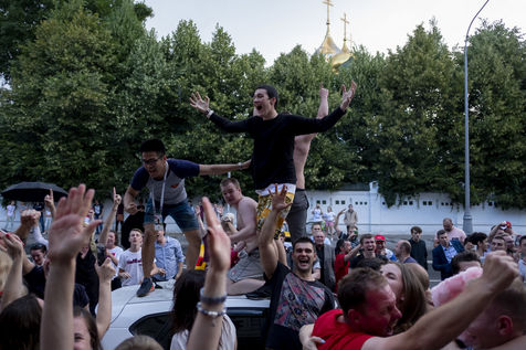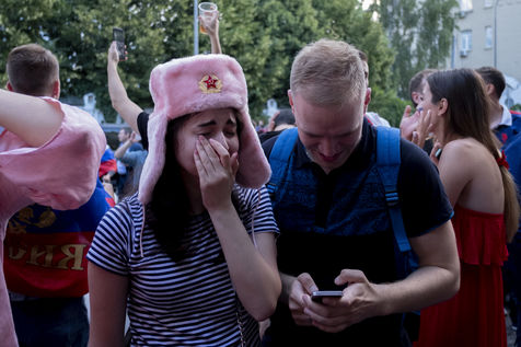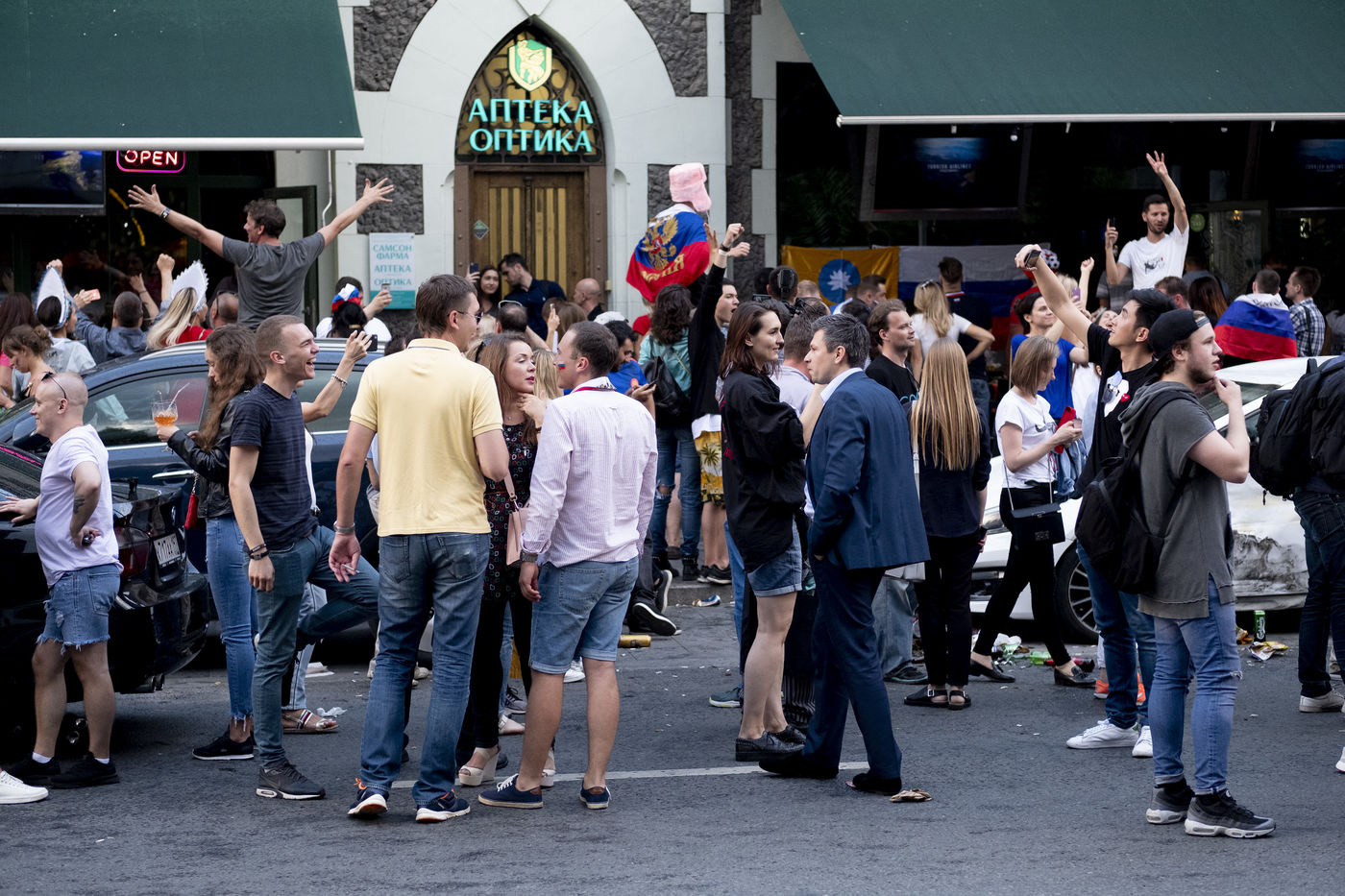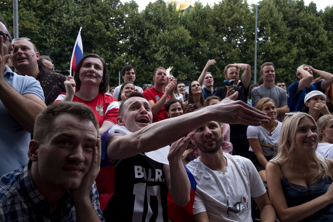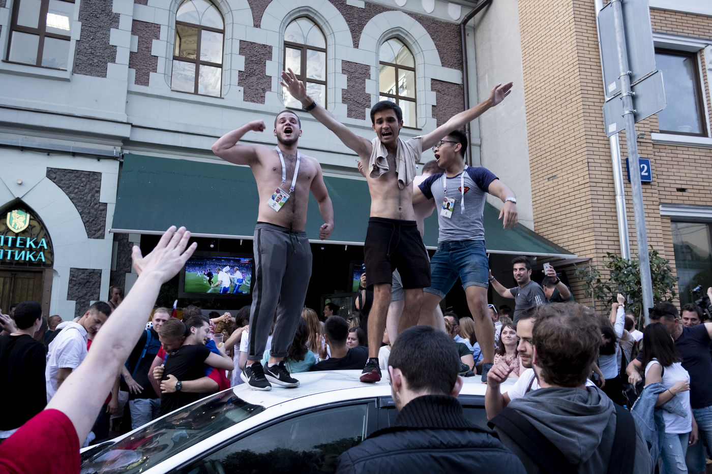 In the center of Moscow, while the fan zone was closed due to storm, Russian supporters gather in the bars of the city. At Ligag Pap, no one dreams and some are already resigned to Spain's victory. After ten minutes of play, Spain opened the scoring, leaving no doubt about the future result. Against all odds, the match was followed by a exhausting and even overtime match, giving an unexpected and jubilant victory for Russia. Resigned to an announced defeat, Russian supporters experienced a victory they considered impossible. By hundreds of thousands of people, they took to the streets to celebrate this unforgettable evening.