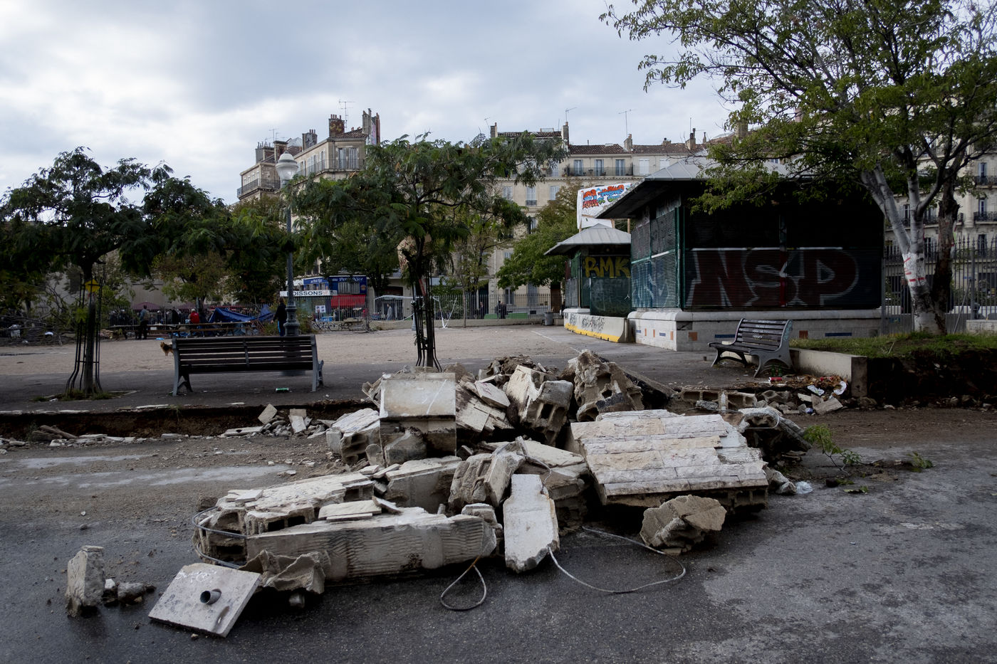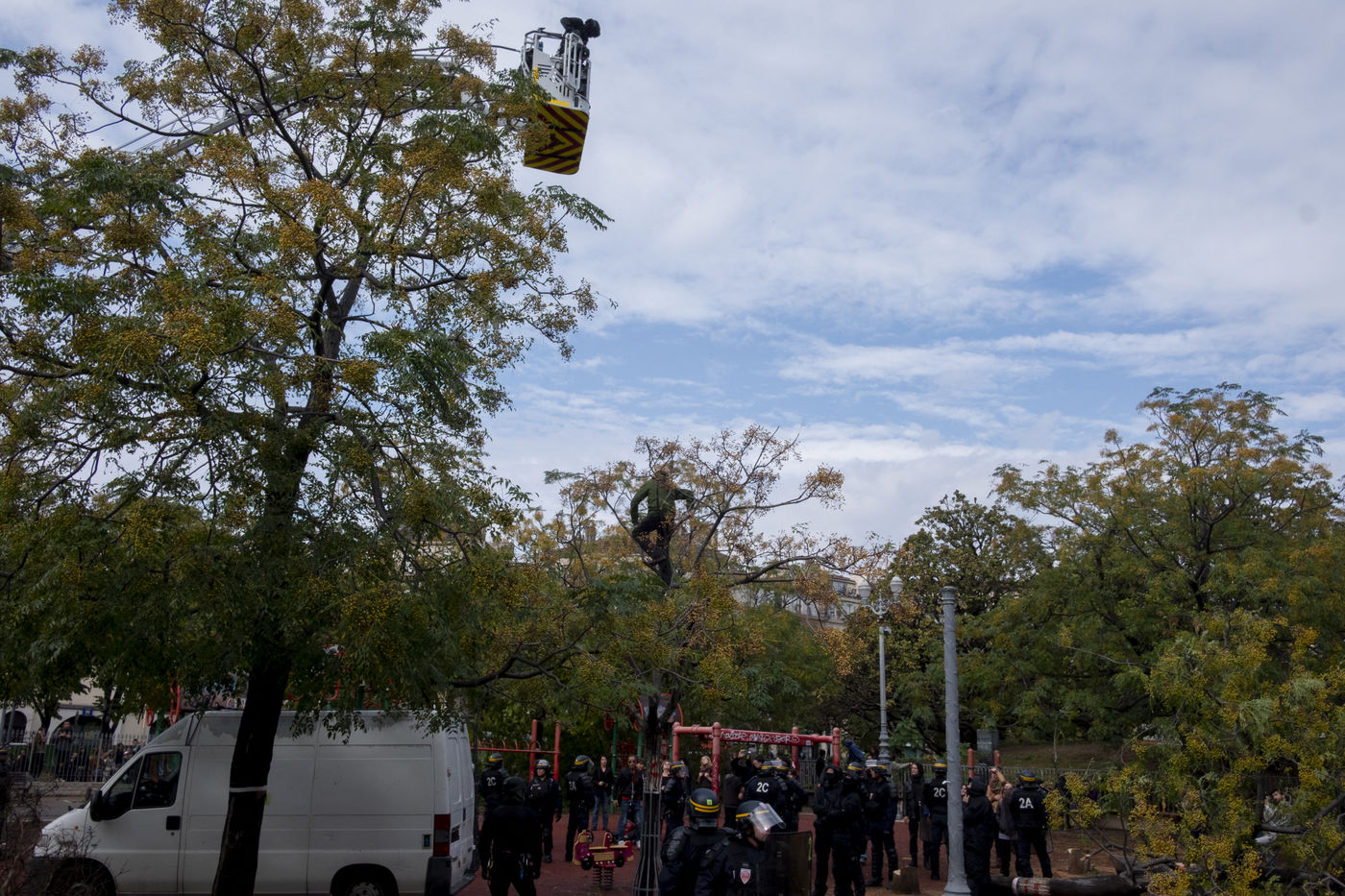 Le 16 octobre à Marseille, l'abattage des arbres qui entoure la place Jean Jaurès, appelé communément la plaine, a débuté. En quelques heures, les ouvriers se sont afférés à couper les arbres, malgré les tentatives des habitants de la Plaine pour ralentir leurs destructions. Certains se sont hissé dans les arbres alors que d'autres tentent tant bien que mal à ralentir les travaux. La tension est palpable. Depuis près d'une semaine, des affrontements éclatent entre force de l'ordre et les défenseurs de la plaine qui refusent d'accepter le plan de rénovation de la place qui n'a pas tenu compte de l'avis des habitants et commerçants. Sans réelle concertation, ce projet de réaménagement est appelé à devenir une zone à défendre. Alors que la coupe des arbres semblent imminentes, la tristesse des défenseurs de la plaine est sur les visages.