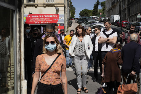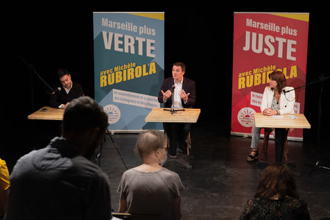Le 12 juin 2020 a Marseille, Michèle Rubirola candidate au élection municipale de Marseille pour le printemps marseillais reçoit Eric Piolle, maire écologiste de Grenoble. En présence de Sophie Camard, Sébastien Barles, Benoit Payan, ils font le point lors d'une visite du quartier Cinq Avenues et Chartreux suivit d'une conférence de presse au theatre des chartreux.
