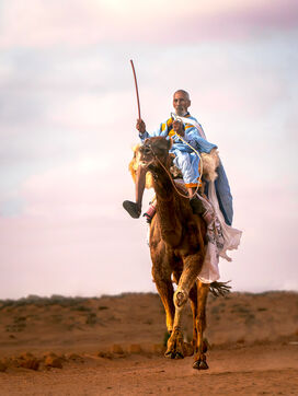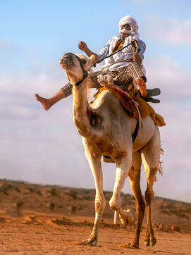 Camel racing, a social practice and festive heritage, is a popular tradition in Saharan communities. Preparing a racing camel involves several steps. Animals are selected based on their type, origin, and age, and are fed a specific diet. They train in groups on the racecourse and are trained to participate in competitions. The races take place on camel tracks under the supervision of specialized committees. There are usually between fifteen and twenty camels competing in each race, and the distance to be covered is determined according to the age of the animals. Knowledge and skills are passed on through the joint efforts of community representatives, government agencies, specialized centers, the racing federation, and clubs. Children and young people gradually acquire the knowledge and skills associated with this practice through observation, simulation, and oral expression. Camel racing is a fundamental aspect of the nomadic way of life, but also a source of inspiration and creativity in poetry and song. Its importance and longevity within Bedouin society are linked to the predominant role of camels in desert areas.