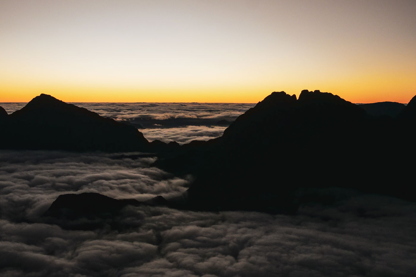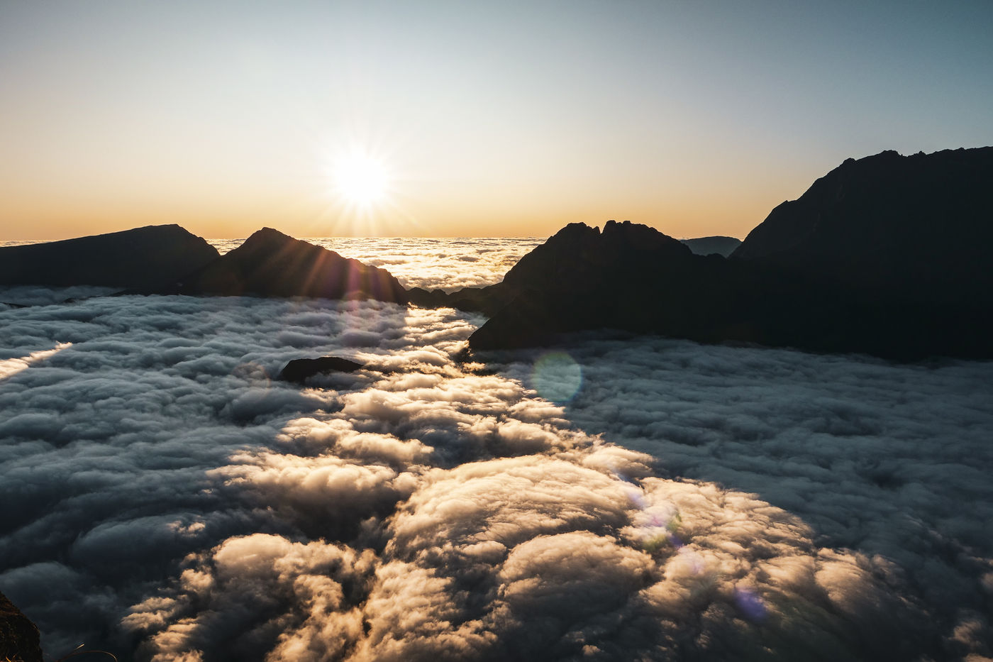 July. A group of hikers decides to get up in the middle of the night to go admire the sunrise at 1h30 of road. It is an insignificant duration in Reunion Island because the roads are often sinuous. We lend ourselves to the game. This day, as most of the other days of the year, the climbing of the sun to the top of the mountains will be breathtaking. The group of hikers will not stop there: it will go then to approximately 3 hours of walk, to the Grand Benare. It is the third highest summit of the island with its 2898m of altitude, and overhangs both Mafate and Cilaos, two of the three cirques of Reunion Island.
