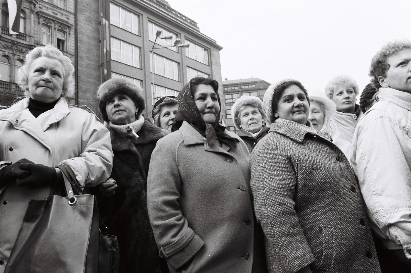 La démission du Président communiste provoque une immense manifestation spontanée : Des milliers de gens sortent dans les rues de Prague joyeux, incrédules, soucieux.
