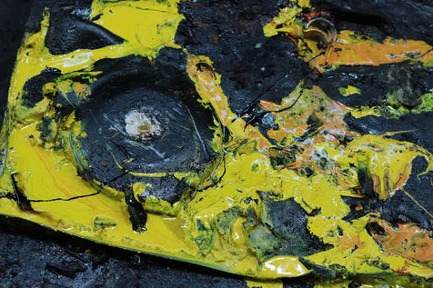A printing plant under demolition is like a huge crime scene. Ink from the presses torn apart runs like blood on filthy floors and mixes up with bolts, wire, metal pieces, pipes...Le Monde printing plant was demolished between 2015 and 2017. This series treats the abstract part of the destruction of an industrial facility of another era and symbolises the evolution of the press. Since then, the French newspaper of reference is printed with other national dailies at an external printing plant.