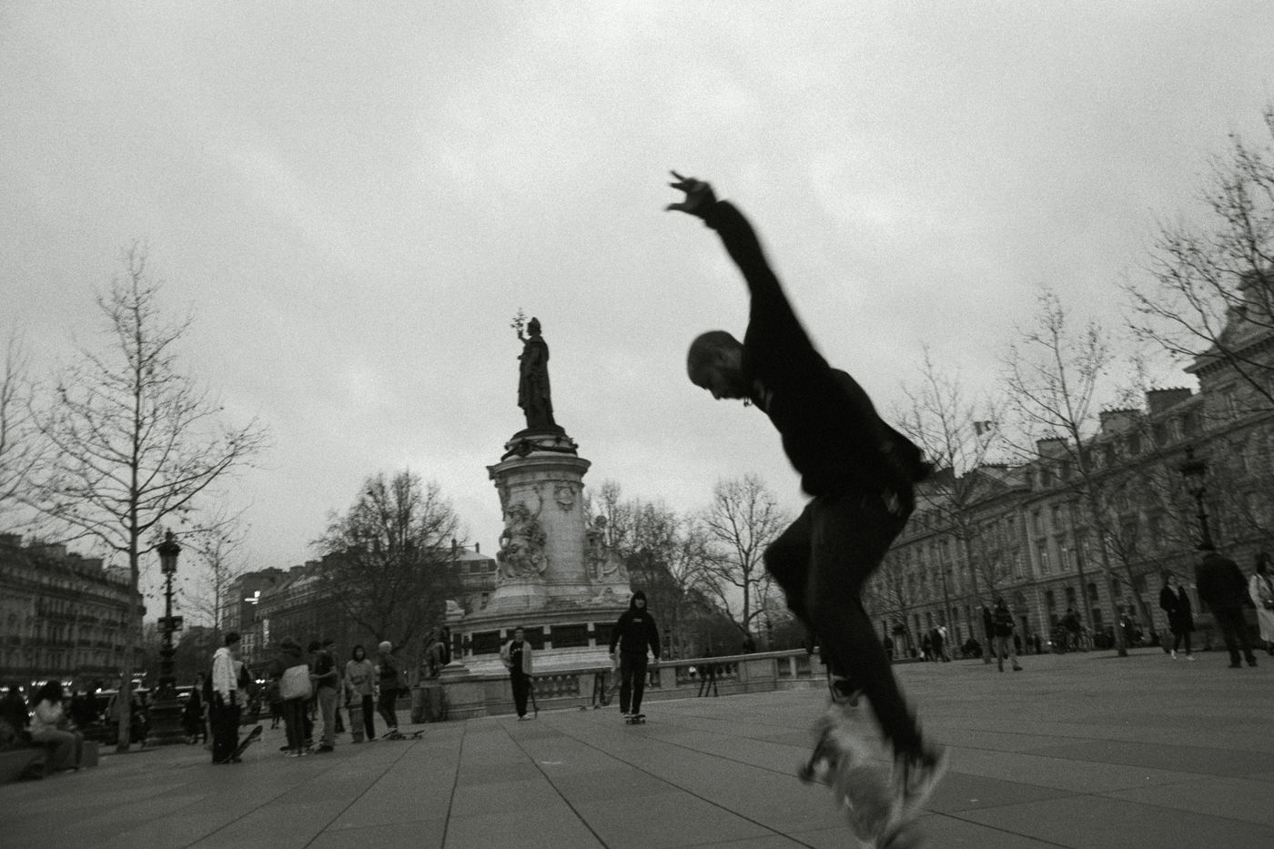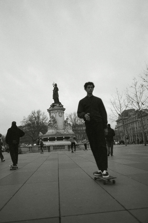La Place de La République, au coeur de Paris, est le lieu de manifestations, de concerts et de rassemblements de toute sorte. Il est aussi un de principaux rendez-vous des skaters venant de tous les quartiers de la métropole pratiquer leur technique et frimer. Cette série de photos argentiques faite avec une pellicule expirée, a été réalisée trois mois avant que la crise du Covid bouleverse nos vies. Ces images d une jeunesse insouciante et libre symbolisent pour moi la vie d avant et sont la promesse de meilleurs jours à venir.