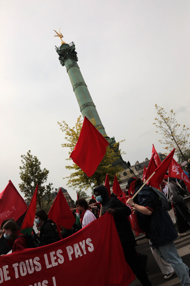 Plusieurs millers de personnes ont marché ce jour à Paris entre la Place de la République et la Place de la Nation, alors que les movements pro Palestinien dans les facultés pour protester contre la guerre à Gaza se poursuivent, en echo avec des movements d étudiants aux Etats Unis.