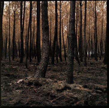France, Saint-Magne, 2022-08-17. Forest of Saint Magne after the fire nicknamed "Landiras 2" by the firefighters which broke out on Tuesday August 9, 2022. The fire destroyed 7.400 hectares in a few days.
