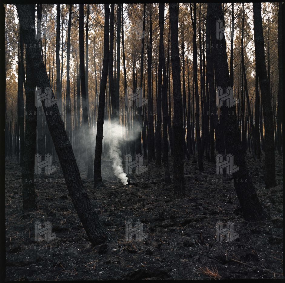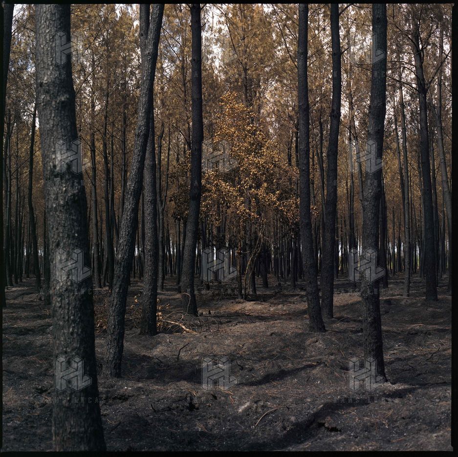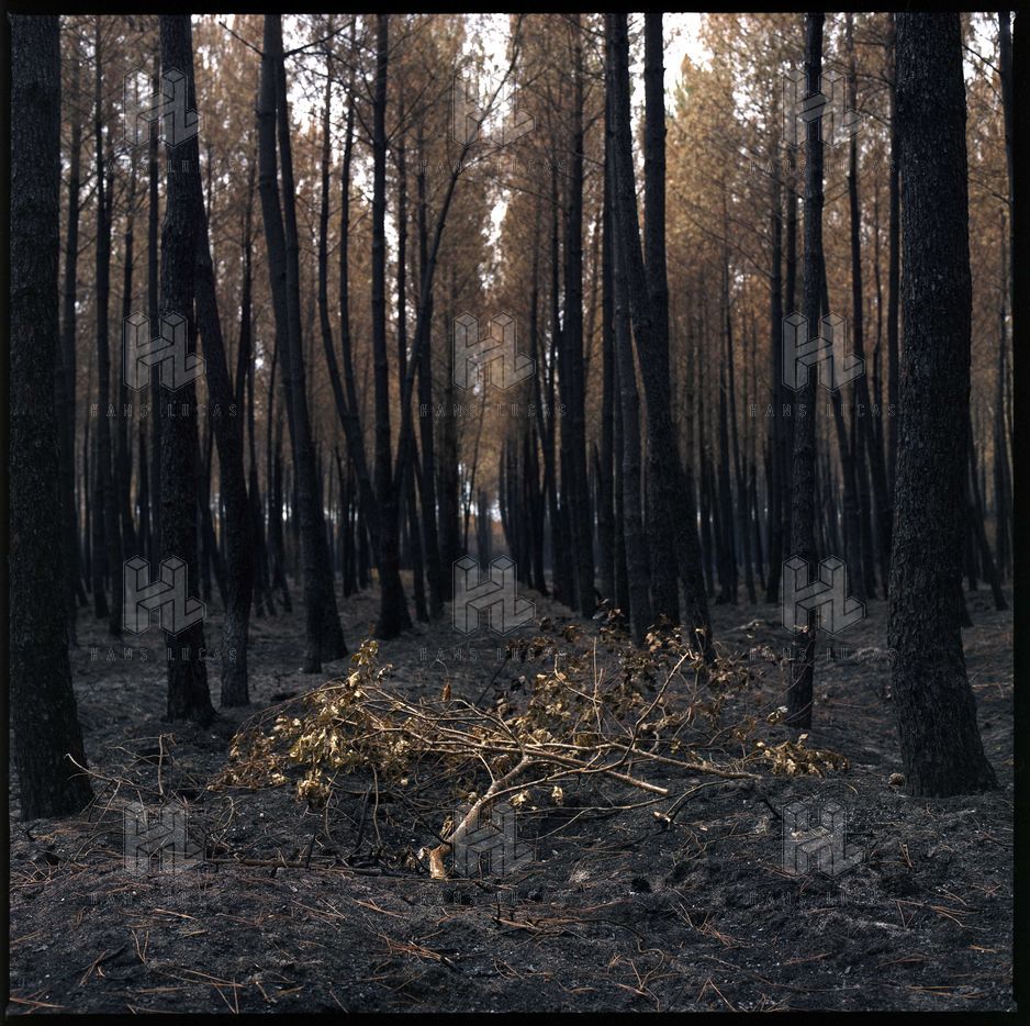 France, Saint-Magne, 2022-08-17. Foret de Saint Magne apres l incendie surnomme "Landiras 2" par les pompiers qui s est declare le mardi 9 aout 2022. Le feu aura detruit 7.400 hectares en quelques jours.