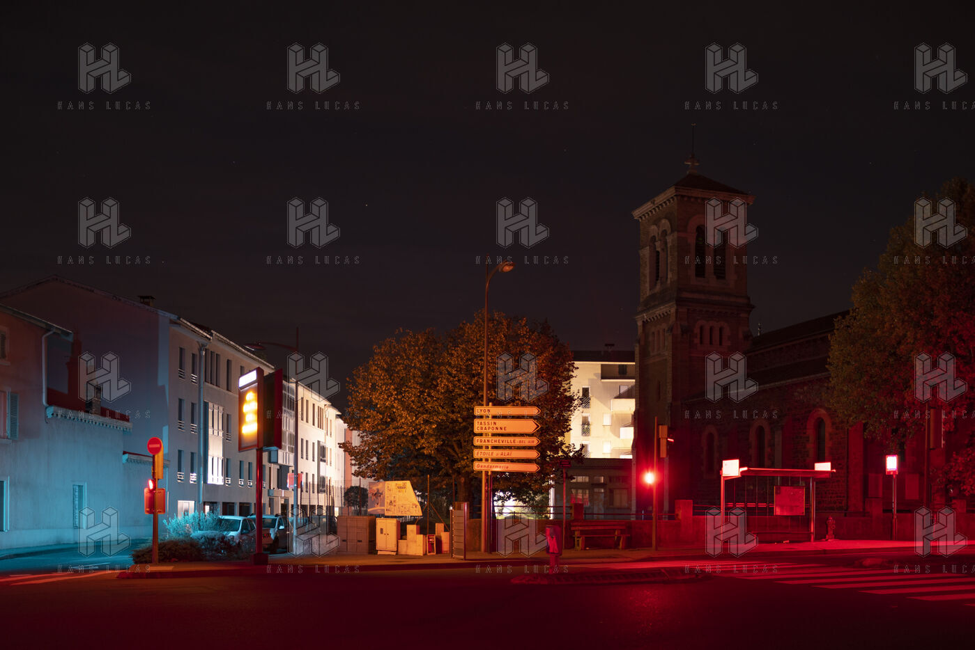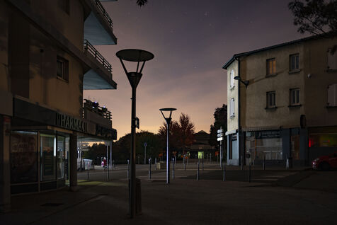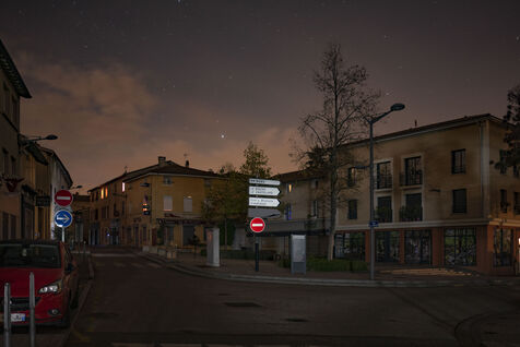 France, Francheville, 2022-11-03. The city of Francheville (14000 inhabitants), located in the Rhone, is experimenting with the extinction of public lighting. A test will be carried out on the whole city from Saturday, October 1st to Wednesday, November 30th, 2022. Thus, the 2051 points of light of the street will be turned off from midnight to 5am. Photograph by Pierre-Antoine Pluquet / Hans Lucas.