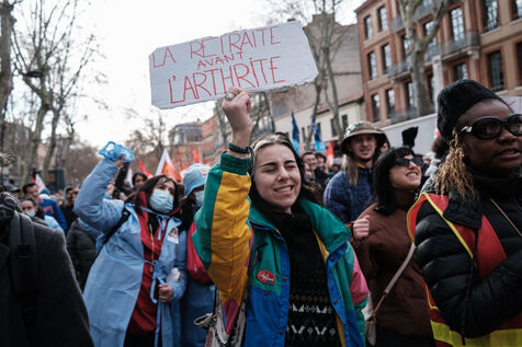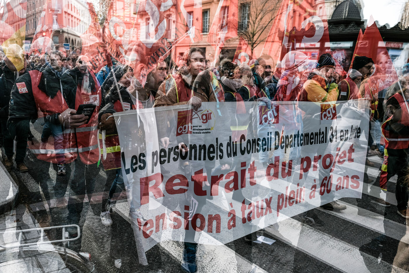 Toulouse, France, 2023-01-19. Strong mobilisation in the streets against the government s pension reform. The government is presenting a bill aimed at extending the retirement age (64 years instead of 62), as well as the number of years required for full pension. All the trade unions have spoken out against this reform and have called for a massive demonstration. More than the mobilisation of the day, the government fears that this movement will last.