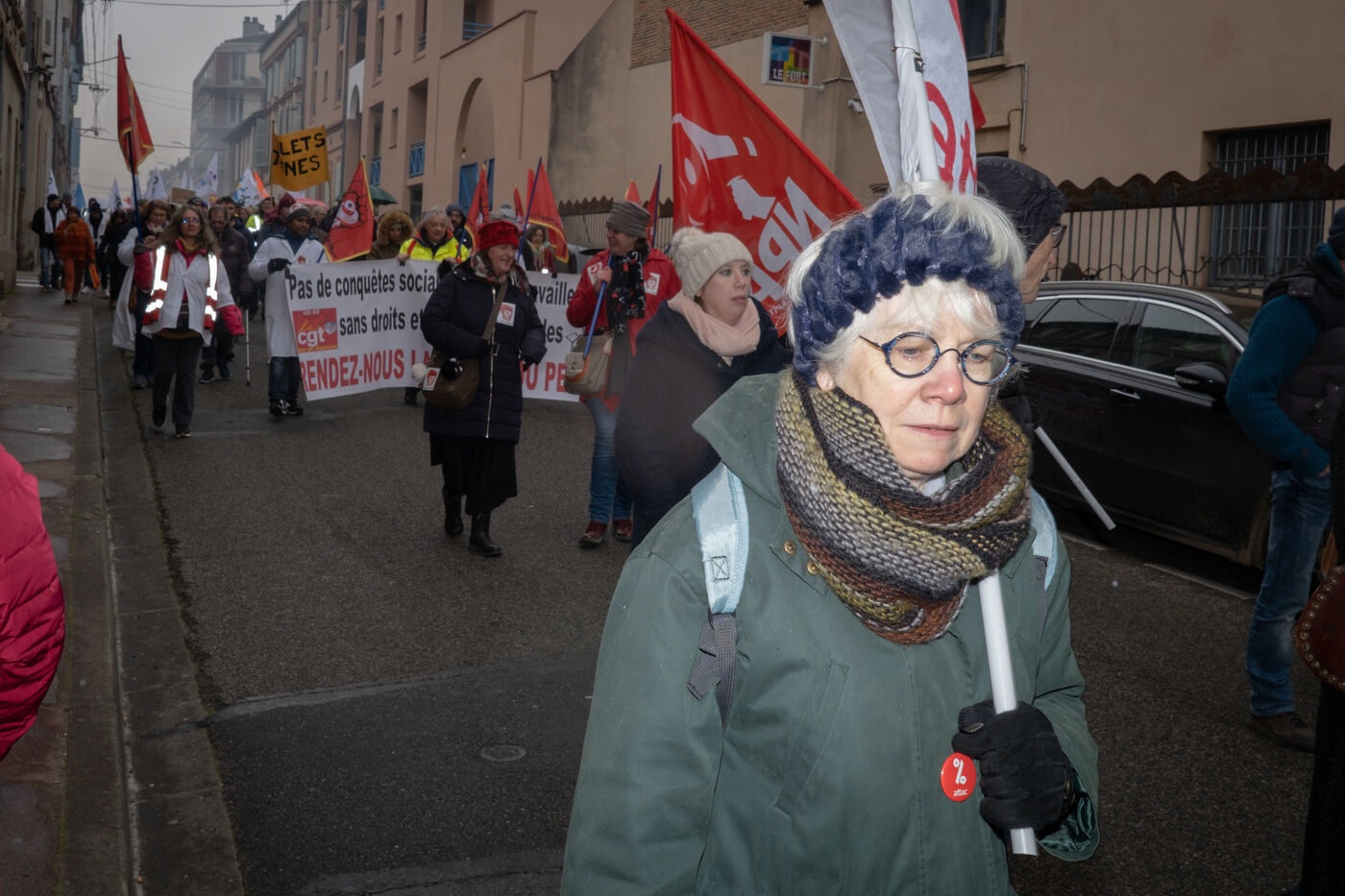 Montauban, France, 2023-02-07. Third day of national demonstration against the pension reform. Following the call of all the unions, and at the moment when the bill is being debated in the national assembly, the crowd has reached the small towns, as here in Montauban (60,000 inhabitants).