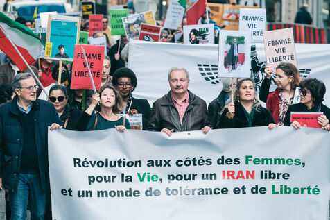 Toulouse, France, 2023-03-12. Demonstration of the Iranian diaspora with the participation of local and national elected officials. The popular uprising appeared in Iran six months ago, after the death of Jani Mahsa Amini; since then, the repression of the mullahs' regime has massively arrested demonstrators, then carried out executions. In recent weeks, schoolgirls have been suffering from mysterious gas poisoning.