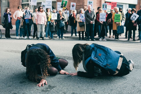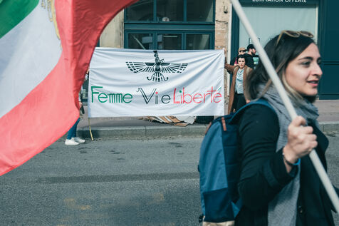 Toulouse, France, 2023-03-12. Manifestation de la diaspora iranienne avec participation d'élus locaux et nationaux. Le soulevement populaire est apparu en Iran il y a six mois de cela, après la mort de Jani Mahsa Amini; depuis, la répression du régime des mollahs a arrêté massivement des manifestants, puis procédé à des exécutions. Depuis quelques semaines, des écolières sont prises de mystérieuses intoxications par gaz.