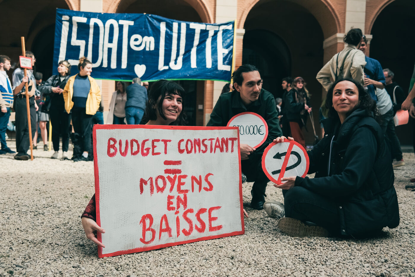 Toulouse, France, 2023-03-13. Les étudiants et personnels de l'ISDAT (anciennement Beaux-Arts) ont occupé les locaux de la DRAC Occitanie (Direction Régionale des Affaires Culturelle), représentant de l'Etat. En conflit avec leurs institutions, de nombreuses écoles d'arts, design, danse, musique ou encore architecture protestent depuis plusieurs mois contre des baisses budgétaires drastiques. Dans le cas de Toulouse, le budget 2022 serait inférieur à celui de 2012.