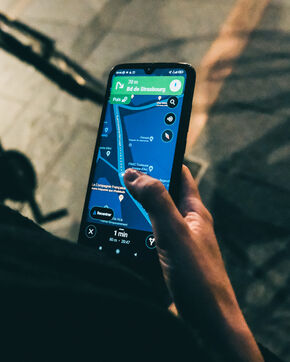 Toulouse, France, 2023-03-30. Des citoyens s'engagent pour sensibiliser les boutiques à éteindre leur enseigne dès la nuit tombée. Armés de téléphones portables, ils sillonnent la ville et repèrent les enseignes encore allumées. En se connectant sur lightsoff.fr, il peuvent prendre une photo de la boutique et la joindre à un message pré-rédigé, et ensuite poster un avis Google. Par un message de sensibilisation, le propriétaire est informé simplement de la démarche d'économie d'énergie à engager.