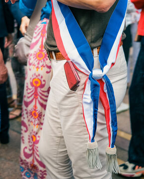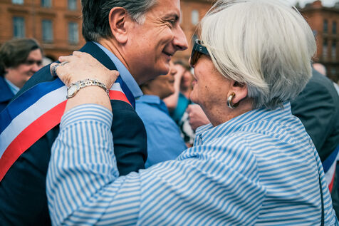 Toulouse, France, 2023-07-03. After the clashes and riots linked to the death of young Nahel, which saw town halls attacked, up to the partially burned home of the mayor of l'Haÿ-les-Roses, the mayor of Toulouse Jean-Luc Moudenc called for a rally of elected officials and citizens, when the sirens sounded on the Place du Capitole. A few days earlier, the city councilor had been taken to task during the music festival, by demonstrators protesting against the dissolution of the Uprisings of the earth.