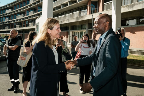 Toulouse, France, 2023-09-01. The President of the National Assembly Yaël Braun-Pivet traveled to Toulouse Capitole University to meet students, then to a social and solidarity grocery store, before visiting the B612 innovation center and start-up incubator. This is the 26th trip of this type, as part of the opening policy of parliament and the tour of France of the territories.
