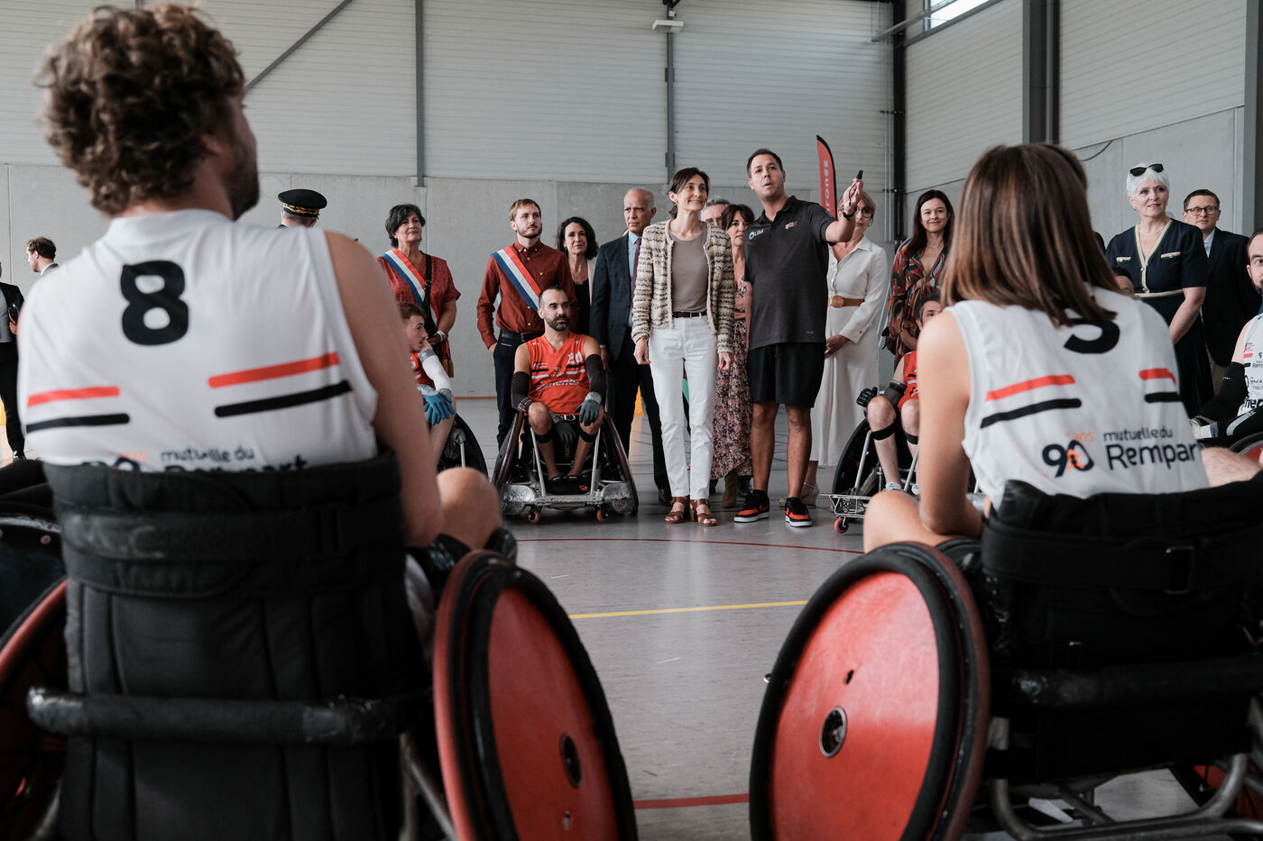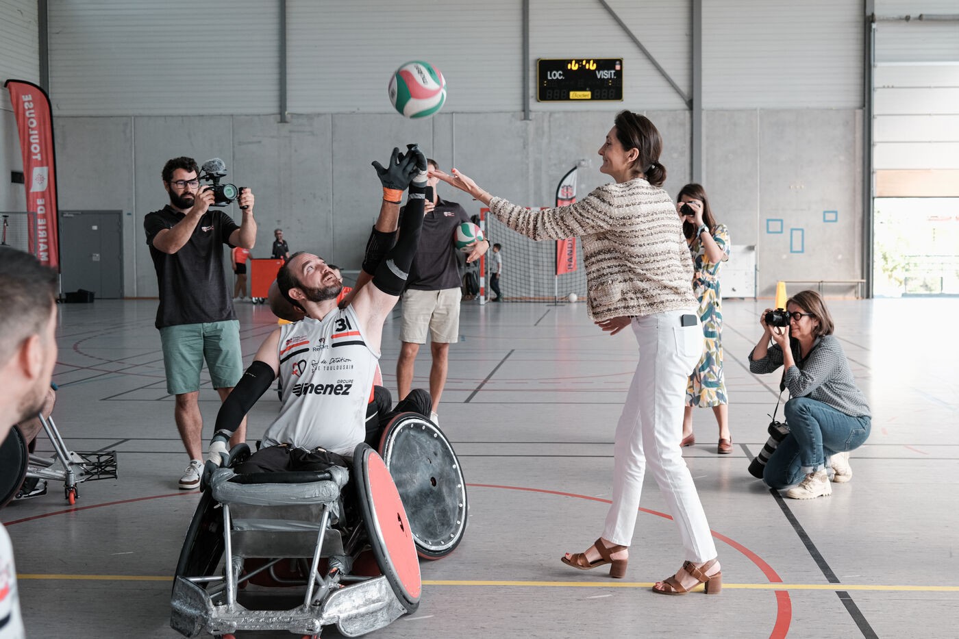 Toulouse, France, 2023-09-10. Amélie Oudéa-Castéra, the French Minister for Sport and the Olympic Games, attended a training session of the Stade Toulousain Rugby Handisport handirugby section. She then went to the Rugby Village, the largest Fan Zone in France, with a capacity of 40,000 spectators. She then attended the group D match between Japan and Chile.