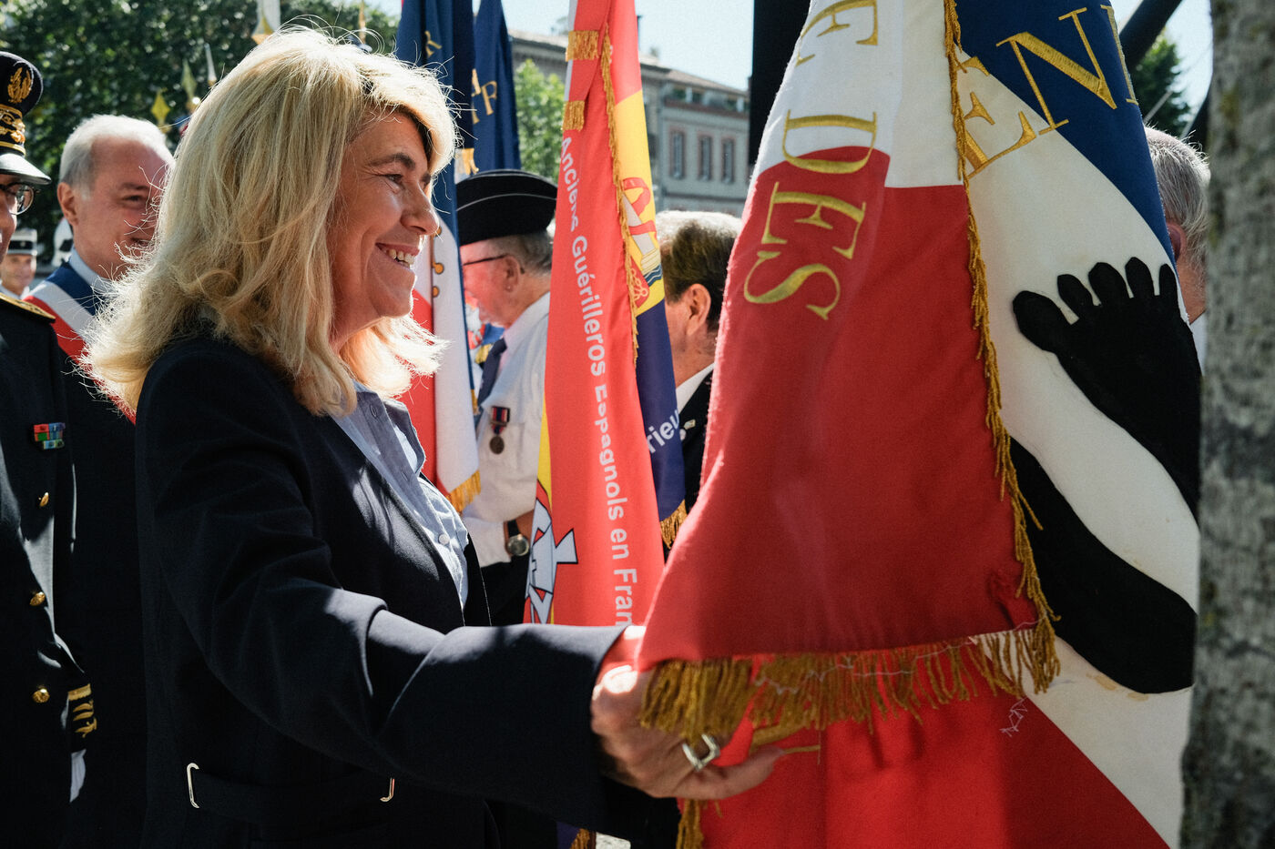 Toulouse, France, 2023-09-25. La ministre déléguée chargée des Collectivités territoriales et de la Ruralité a présidé la cérémonie d?hommage aux Harkis et autres membres des formations supplétives de l?armée française en Algérie. Cette journée veut, soixante ans après la fin du conflit franco-algérien, honorer les combattants algériens qui ont servi sous le drapeau Français. mais aussi reconnaître leur souffrance, qu'ils soient restés en Algérie ou qu'ils soient venus vivre en France.