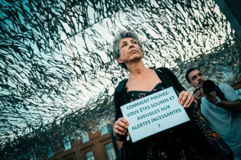 Toulouse, France, 2023-10-02. Rassemblement devant la mairie de Toulouse des opposants à l'autoroute A69. Autour des grévistes de la faim, un mur symbolique a été érigé, à la veille de la rencontre entre les opposants, la Présidente de la Région Occitanie et le cabinet du Ministre de la Transition Ecologique et Transports.