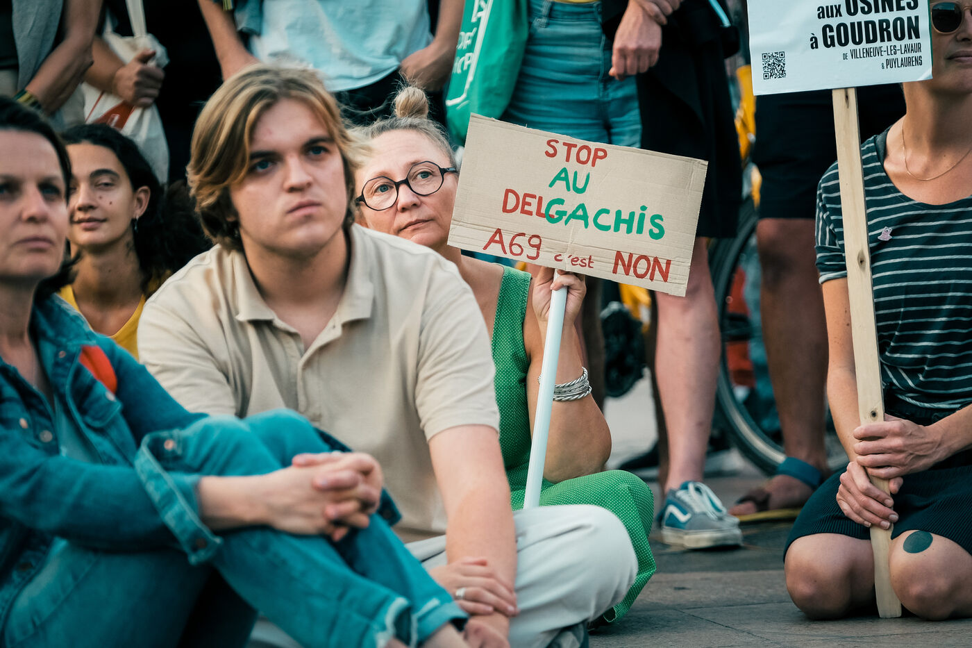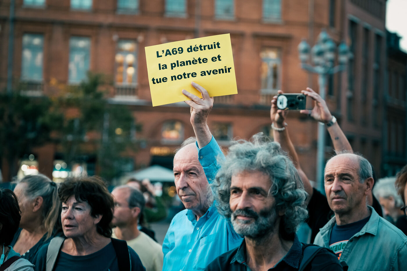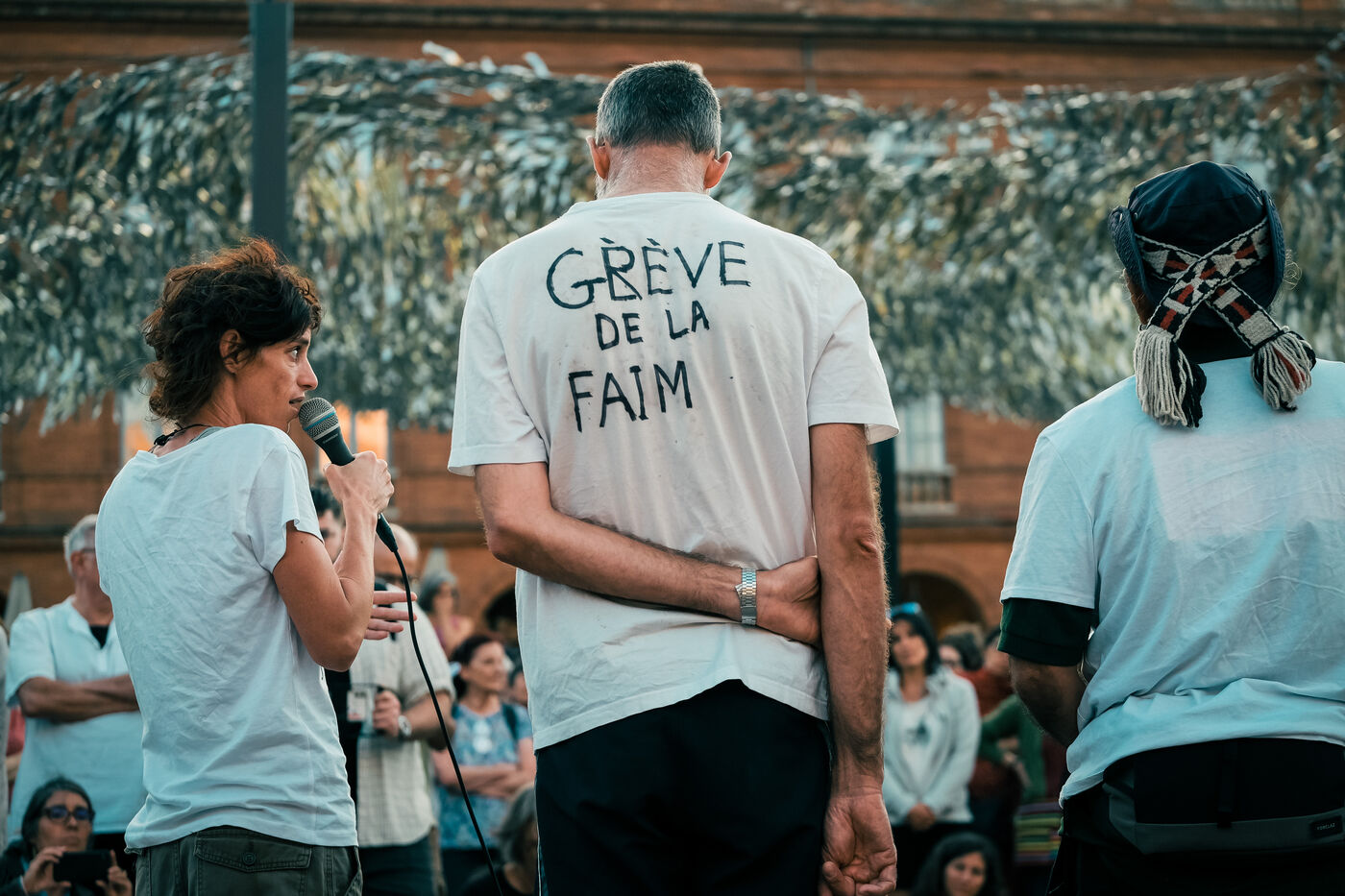 Toulouse, France, 2023-10-02. Opponents of the A69 motorway gather in front of Toulouse town hall. A symbolic wall was erected around the hunger strikers on the eve of a meeting between the opponents, the President of the Occitanie Region and the office of the Minister for Ecological Transition and Transport.