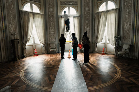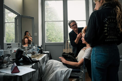 Toulouse, France, 2023-10-23. Le tournage du téléfilm co-réalisé par Julie Gayet et Mathieu Buisson s'est installé pour une journée dans le château de la Reynerie, à Toulouse. Biopic retraçant la vie de la femme révolutionnaire et féministe Olympe de Gouges, le téléfilm devrait sortir à l'automne 2024. Ambiances de plateau et accueil de jeunes du quartier populaire du Mirail par Julie Gayet.